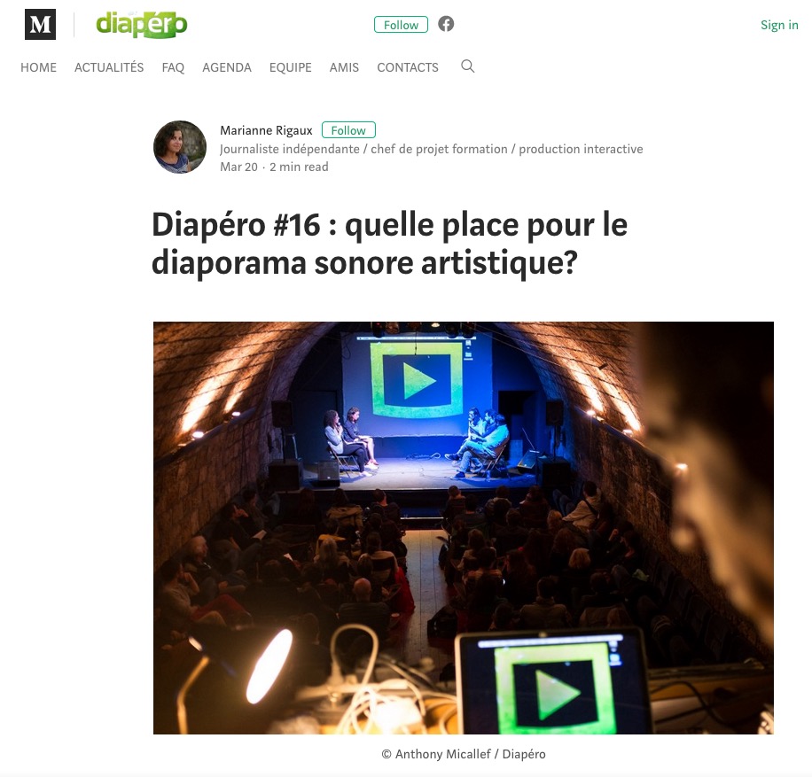 AuthorPostedbyfocuszero on on 18 avril 2018 la fin de la terre à Diapéro Mon court-métrage «la fin de la terre» faisait aujourd’hui parti des projections du Diapéro#16, sur le thème de la «place pour le diaporama sonore artistique».