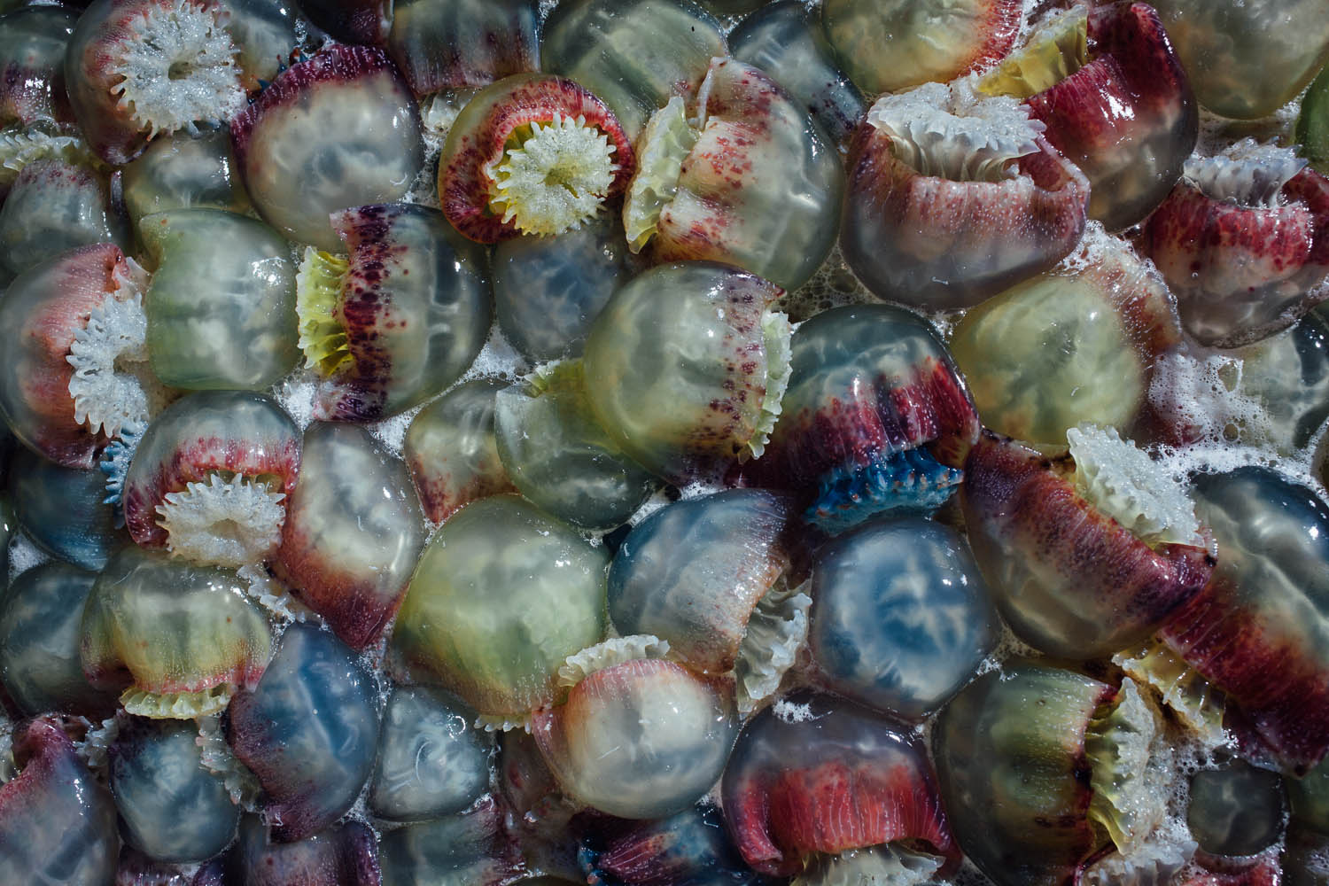 Sur la plage de Kauquira, les familles des pêcheurs de méduses s’affairent à nettoyer les méduses qui seront ensuite vendues à l’usine locale de transformation. – On Kaukira beach, local families are busy cleaning jellyfishes that will be sold to the local packaging factory. Valerian Mazataud I Hans Lucas