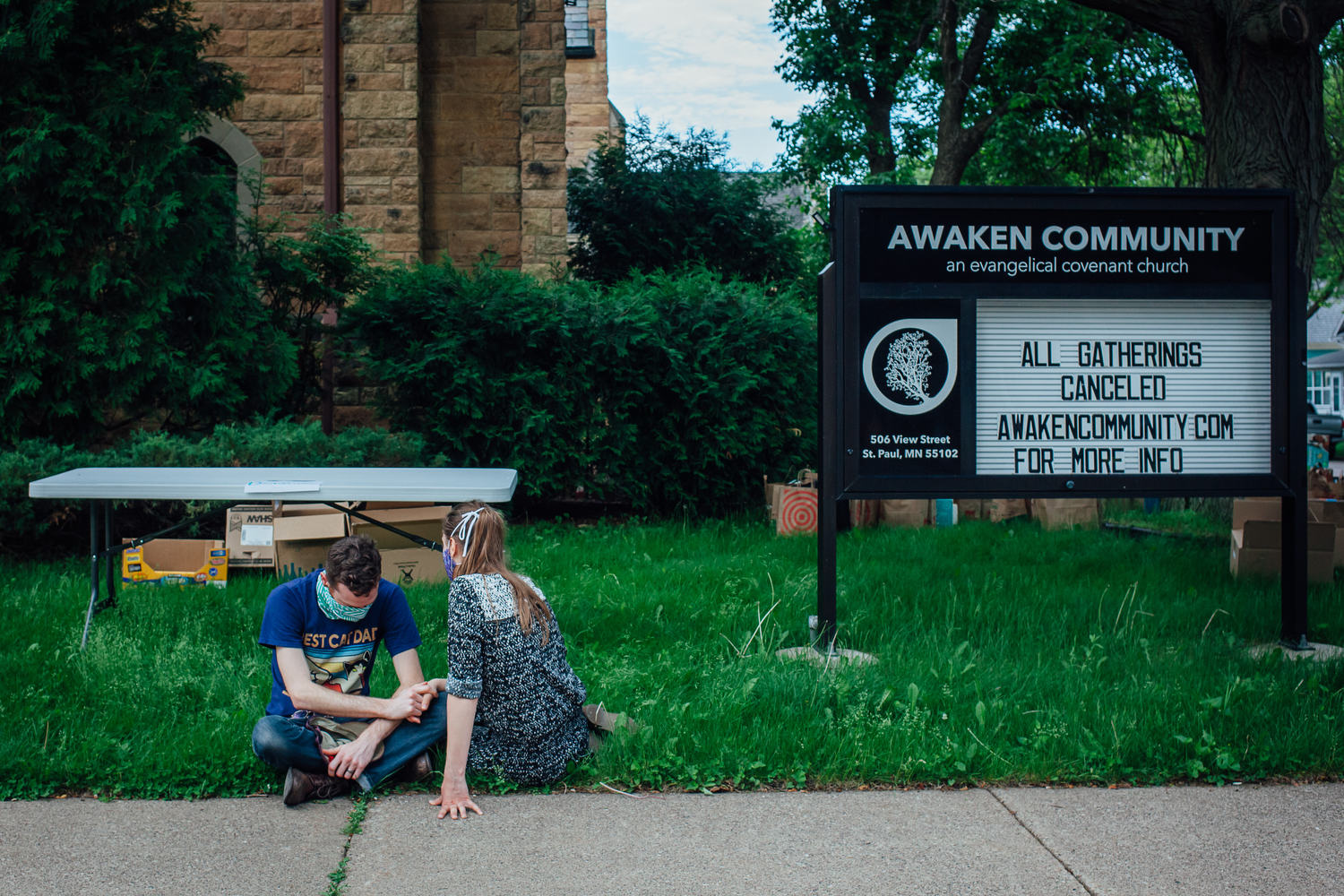 Les Twin Cities toujours en dueil plus d’une semaine apres la mort de George Floyd. L’eglise evangelique Awaken, du quartier West Seventh de Saint Paul, ville jumelle de Minneapolis, organisait aujourd’hui une messe silencieuse en exterieure en memoire de George Floyd.