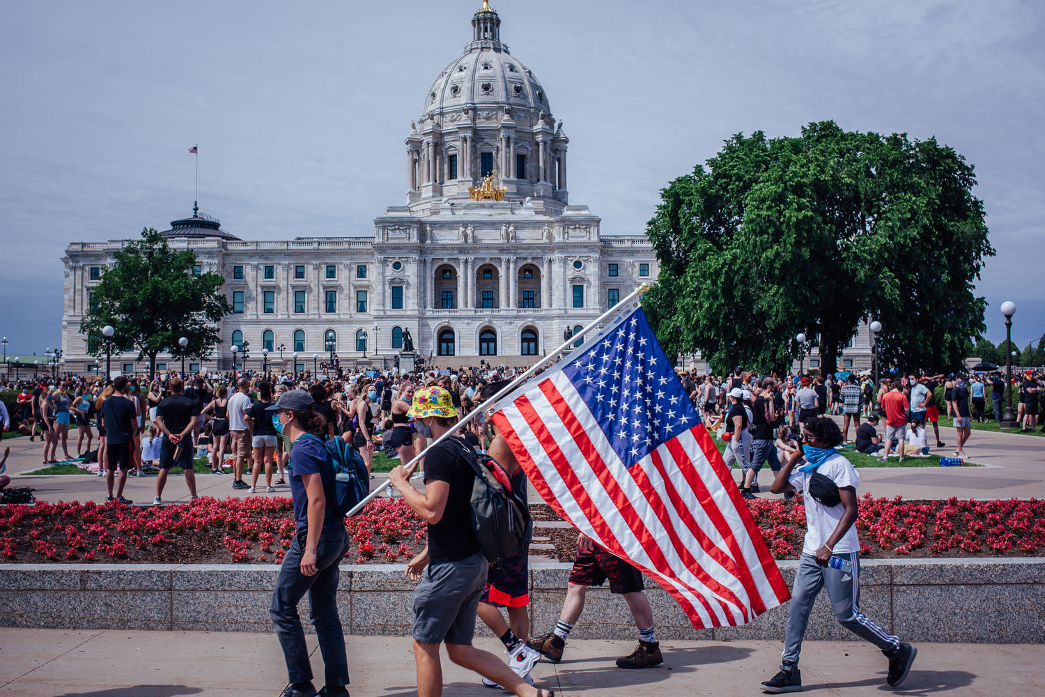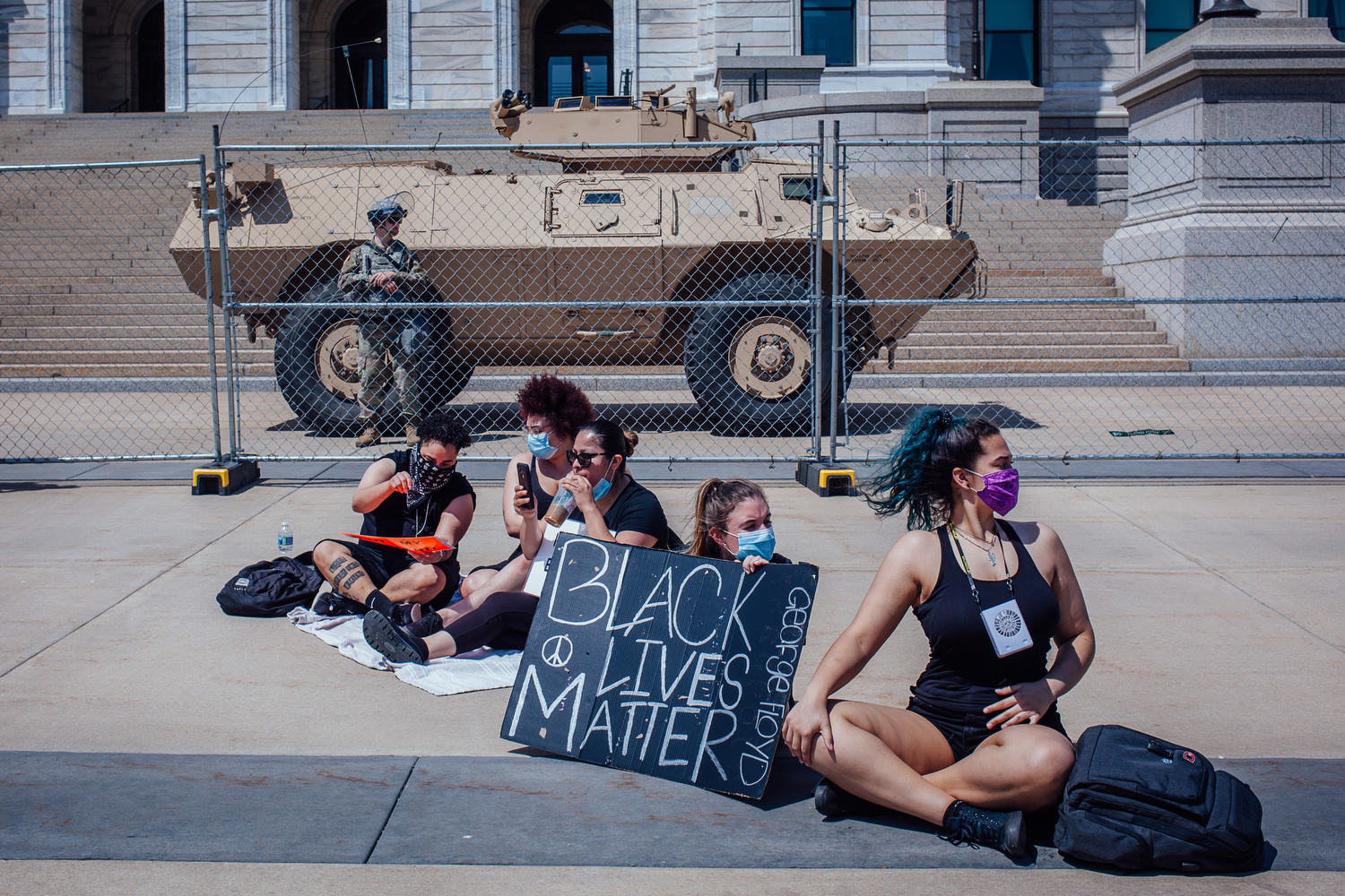Des milliers de personnes ont pris part a un rassemblement en hommage a George Floyd, face au Capitole de l’Etat du Minnesota, a Saint Paul. Depuis plusieurs jours, le batiment est encercle par la Garde Nationale. Reportage a Minneapolis, une semaine apres la mort de George Floyd.