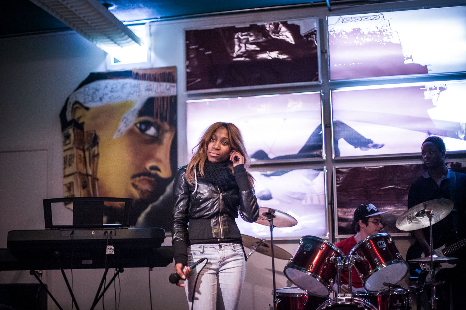 Martha Lamartinière, 18 ans, sur la scène du Café jeunesse multiculturel. Ce soir là, elle n’a pas réussi à chanter, elle n’a pas pu rentrer dans le rythme. Elle vient ici depuis plusieurs années et aimerait en faire une carrière. L’arrondissement ne manque pas d’organismes communautaires, ou de projets socio-culturels, mais le taux de diplômation y reste le plus bas de l’agglomération montréalaise. – Martha Lamartiniere, 18, tries to improvise a song on the scene of Multicultural youth cafe. She comes here for several years and hopes to make a career as a singer. The borough counts a large number of community groups that take care of education, culture, health or social relations. Still the borough has the lowest diploma rate in Montreal. Valérian Mazataud | Hans Lucas