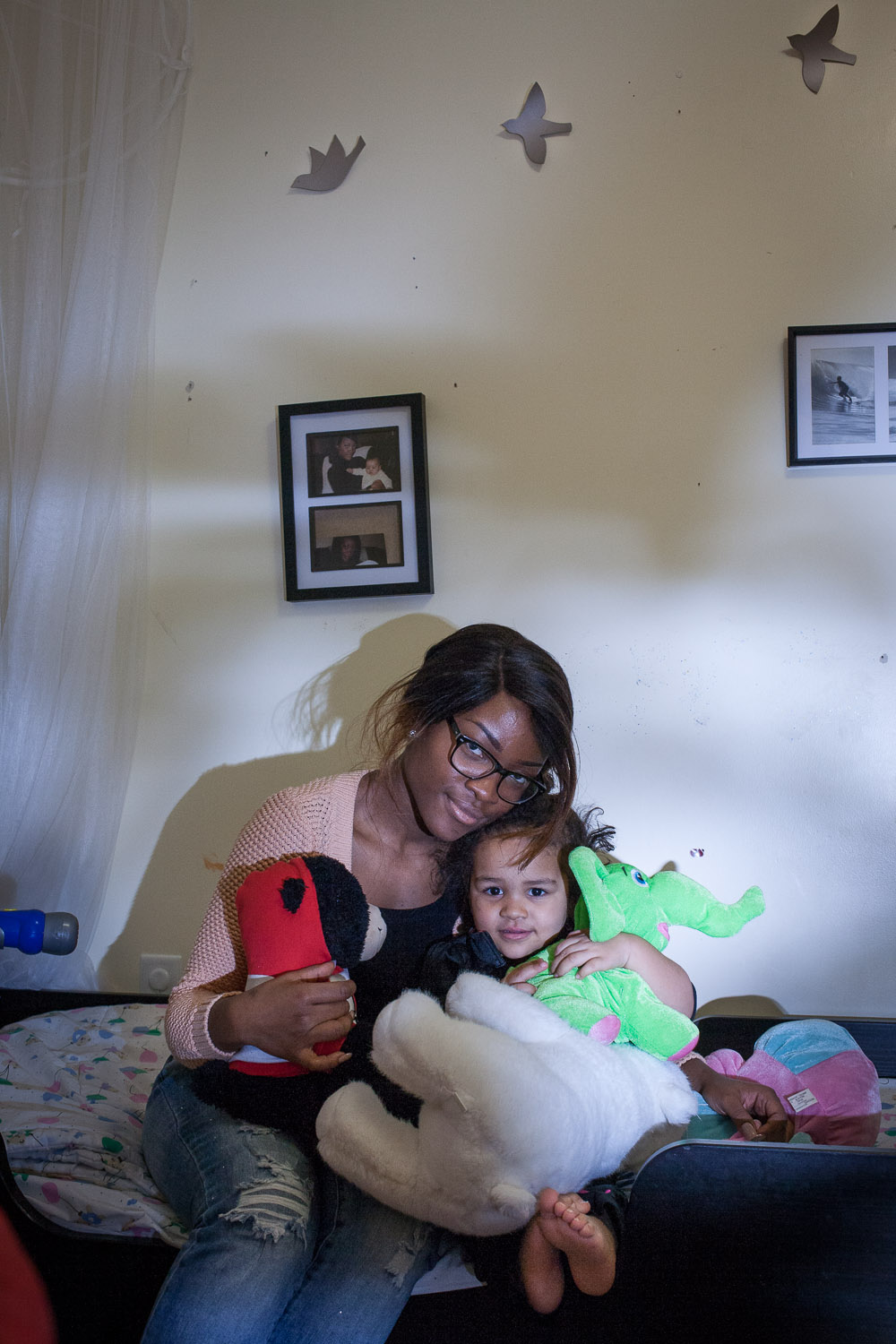 Vania Codio, 24 ans et sa fille Tania, 3 ans, dans leur appartement au foyer Un Rayon de Soleil, reservé aux jeunes mère monoparentales de retour aux études. Tomber enceinte à 19 ans a déclenché chez Vania une « alarme ». Se retrouver seule et sans diplôme d’études secondaires, c’était le pire des scénarios. L’infirmière qui suivait sa grossesse lui a appris l’existence d’Un rayon de soleil. « Le lendemain même, enceinte de huit mois, je déménageais ici », explique-t-elle. – Vania Codio, 24, and her daughter Tania, 3 in their appartment in the single mothers shelter le Rayon de soleil (the ray of sun). Vania got pregnant at 19 and moved here before giving birth. In the borough 43% of the families are single parented (80% are single mothers) against 33% for the island of Montreal. In the Noth-East area where the shelter is located the rate is of 54%. Valérian Mazataud | Hans Lucas -