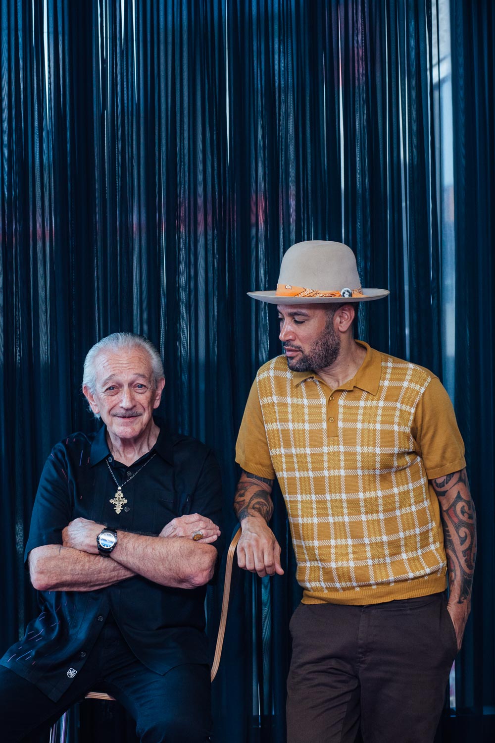 Ben Harper et Charlie Musselwhite lors de leur passage au Festival de Jazz de Montral en 2018. – Ben Harper and Charlie Musselwhite before their show during Montreal Jazz Fest 2018.